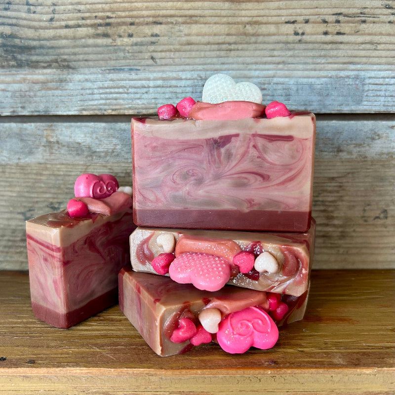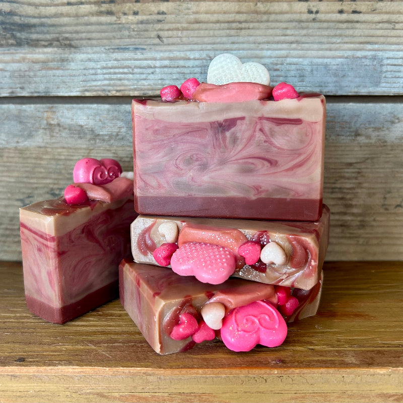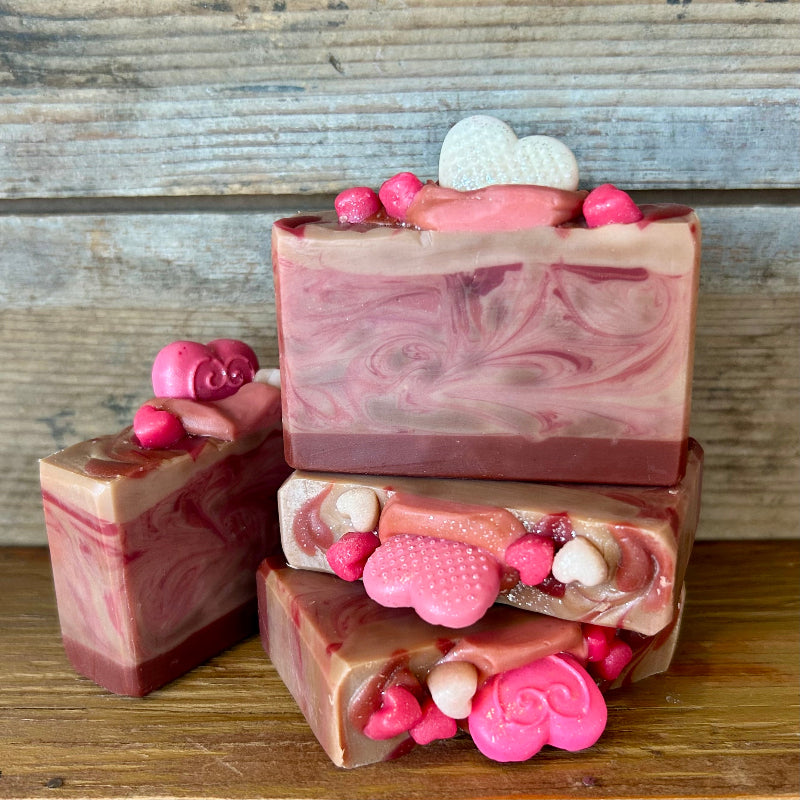 Sweet as love itself, this decadent soap is swirled in rich chocolatey cocoa butter and topped with charming little hearts. With a sweet fragrance as warm and inviting as a box of chocolates, it’s the perfect treat for your skin—leaving it soft, pampered, and beautifully scented. A lovely gift for any moment you want to show a little extra love.